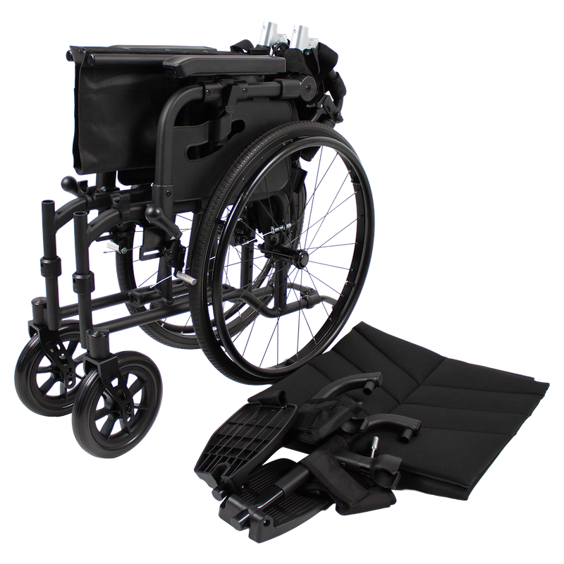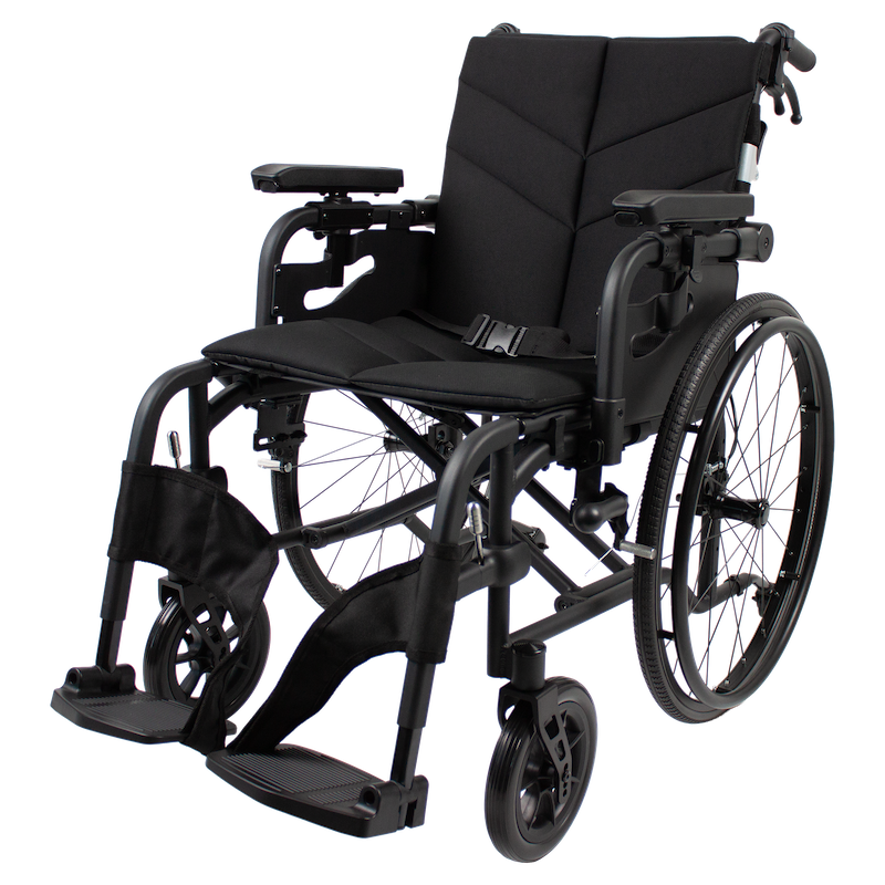 Orion – A heavy-duty yet lightweight manual wheelchair designed for strength, stability, and daily practicality. Quick-release wheels and adjustable features make it suitable for both self-propelled and assisted use.